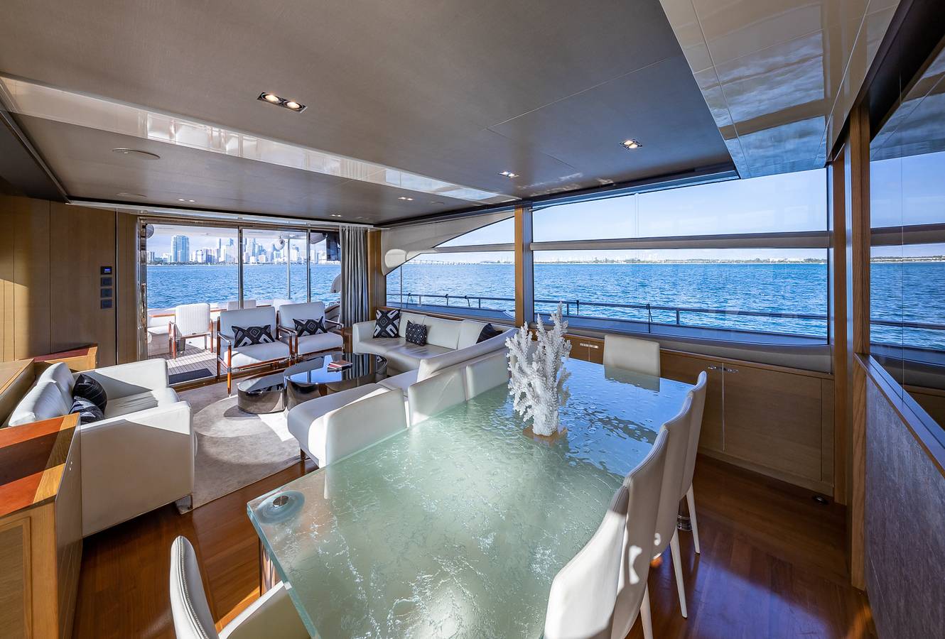 Step aboard and discover 4 en-suitecabins, a palatial master suite, and a saloonbathed in light from sweeping panoramicwindows. The flybridge is made forcelebration, with plush sunpads and a chicwet bar. The Princess 88 turns everyvoyage into an occasion.